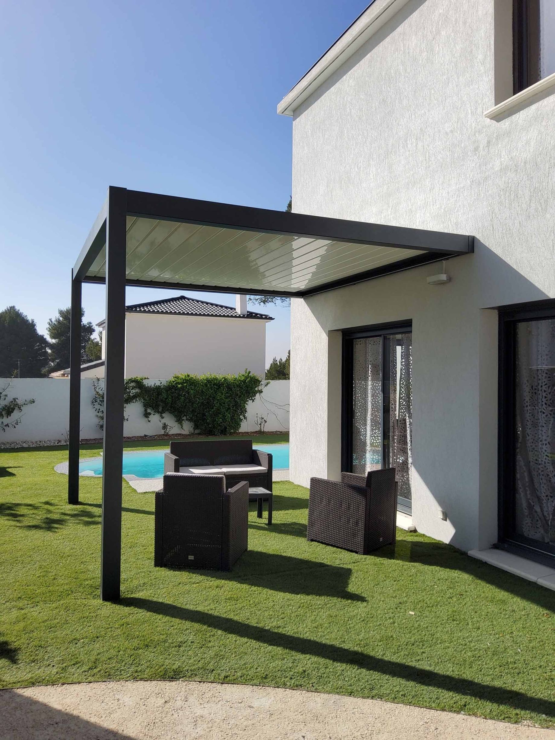 • Toile tendue fixe ou enroulable : design contemporain et confort d’été
